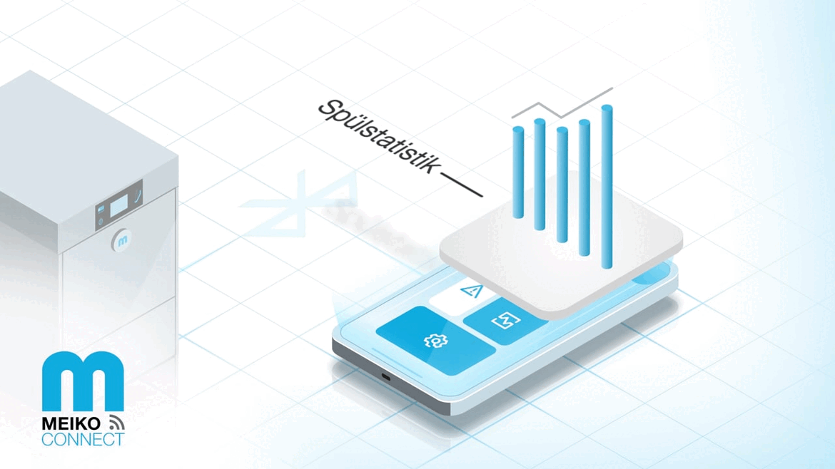 Digitale Kommunikationstechnologien sichern die Hygiene in der Profi-Küche. MEIKO Connect ist das smarte Cockpit für Ihre Spülmaschine und verschafft umfassenden Überblick: Wie ist der Hygienestatus meiner Spülmaschine? Die MEIKO Connect App sorgt für lückenlose Dokumentation und hält die Betriebsbücher gemäß DIN EN 17735 vor. Diese können mit der App exportiert und gespeichert werden.