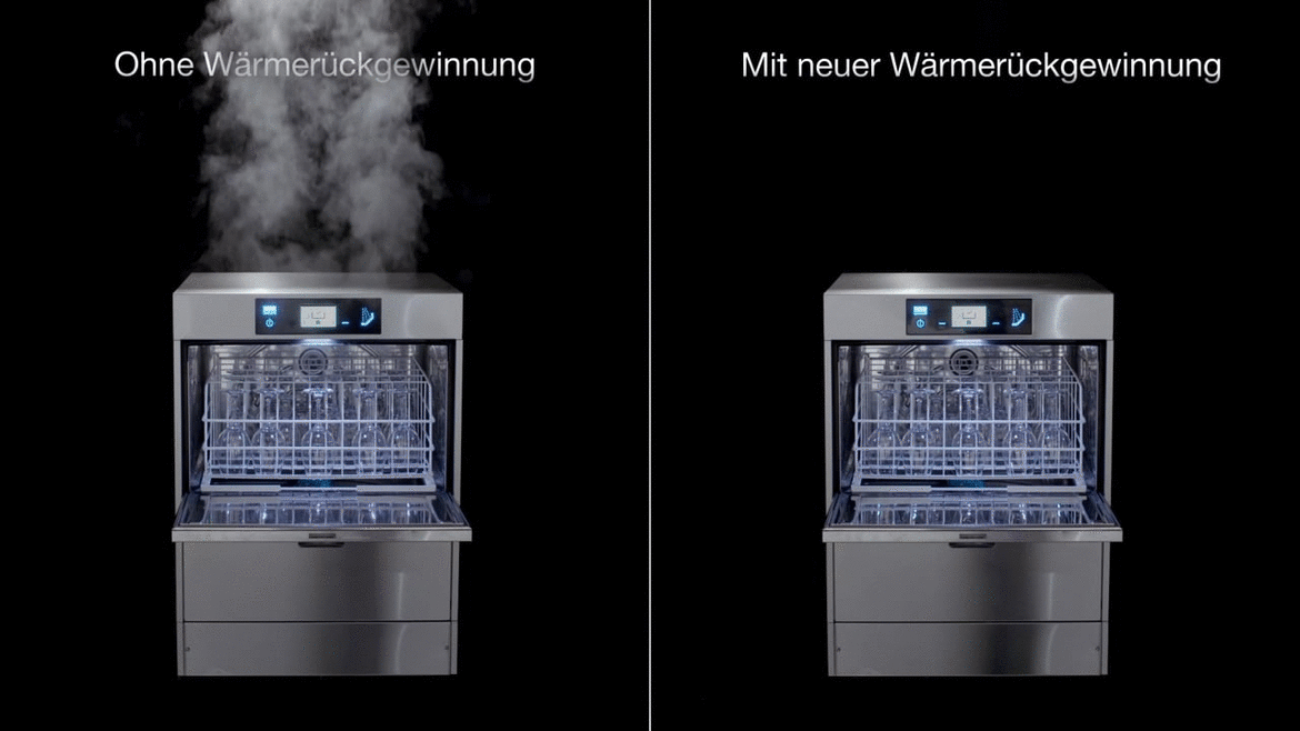 Unsere platzsparende Untertischmaschine M-iClean U hat alles, was sich Kunden wünschen: Dank intuitiver Bedienerführung geht das Bedienen kinderleicht. Der Signaltürgriff zeigt durch Farben an, ob die Maschine gerade spült, ein Problem hat oder fertig ist. Die Comfort Air Wärmerückgewinnung sorgt für ein besseres Raumklima, da kaum Wrasen entweicht. Das GiO-Osmose-MODUL macht lästiges Nachpolieren überflüssig und beugt Rekontaminationen durch Geschirrtücher vor.